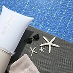 Fasilitas pantai di antaranya payung. Ada klub kesehatan dengan berbagai macam olahraga.